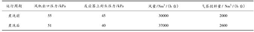 壓縮空氣計(jì)量表煮洗吹掃后,裝置運(yùn)行期間無(wú)燃爆事故,且裝置運(yùn)行的風(fēng)量明顯提高,系統(tǒng)阻力明顯降低,投料量增加。現(xiàn)將煮洗前后的運(yùn)行數(shù)據(jù)對(duì)比如下: