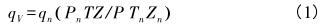 式中,qV、qn分別為工作狀態(tài)和標(biāo)準(zhǔn)狀態(tài)下的體積流量,m3/h;P、Pn分別為工作狀態(tài)和標(biāo)準(zhǔn)狀態(tài)下的絕對壓力,Pa;T、Tn分別為工作狀態(tài)和標(biāo)準(zhǔn)狀態(tài)下的熱力學(xué)溫度,K。