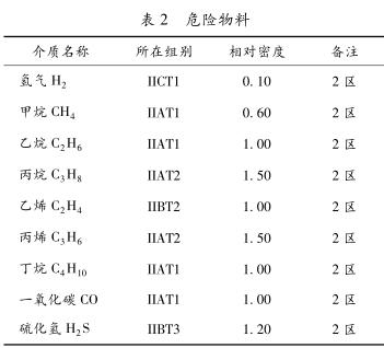 操作溫度為48.9℃,沒有特殊性,選擇普通的渦街流量計即可;根據(jù)現(xiàn)場情況,流量計為露天安裝,防護(hù)等級選擇IP65即可;根據(jù)《爆炸危險環(huán)境電力裝置設(shè)計規(guī)范》GB50058-2014,本裝置中各介質(zhì)所在組別屬于危險物料,見表2。因此儀表的防爆標(biāo)志選擇ExiaⅡCT4Gb即能滿足要求。根據(jù)項目統(tǒng)一要求輸出信號選擇為4~20mA+HART。