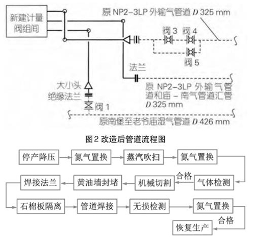 (3)該處的改造工作需要采用停輸改造的方式。施工時間很緊,并且需要在12h內(nèi)回復(fù)蒸汽流量計的正常運(yùn)行,從而保證業(yè)主能夠正常使用天然氣。