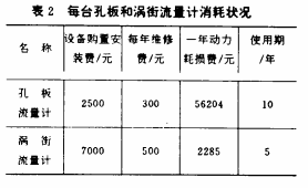由表2可知,渦街流量計的壽命較低而設(shè)備購置和維修費又偏高。但因動力耗損費大大低于孔板流量計,其節(jié)約潛力仍相當(dāng)可觀。