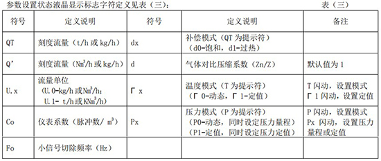 工作狀態(tài)液晶顯示標志字符定義見表(二):