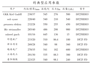 以上措施保證了探頭強度符合安全需求,使高溫高壓蒸汽測量成為現(xiàn)實。西斯特流量計在國內(nèi)外主蒸汽測量方面的典型應用參數(shù)如表2所示。