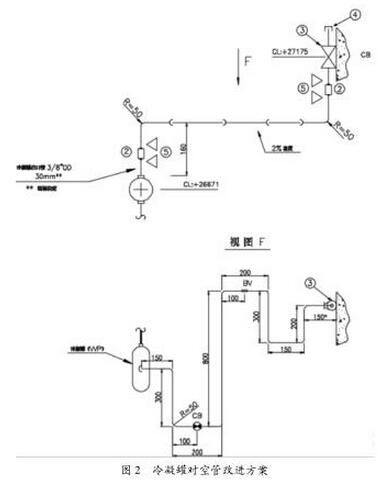 通過工程設(shè)計(jì)人員和運(yùn)行人員的溝通, 提出在冷凝罐對空管增加截止閥, 用于在檢修期間冷凝罐內(nèi)高溫蒸汽的排出。