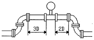 縱端面采用特殊形線的變徑整流器(己申報(bào)****),具有整流,提高流速及改變流速分布的多重作用,其結(jié)構(gòu)尺寸小,長(zhǎng)度僅為工藝管內(nèi)徑的1/3,可以直接卡裝在儀表的兩端,不僅不需要另外附加直管道,而且可以降低儀表對(duì)上游直管道的要求。實(shí)驗(yàn)表明:儀表上游阻力件為一個(gè)平面內(nèi)的兩個(gè)90°彎頭 在一般情況下,渦街流量表上游側(cè)應(yīng)加裝大于20倍管道內(nèi)徑長(zhǎng)度的直管道,而渦街流量表加裝了變徑整流器大大降低了對(duì)上游測(cè)直管道長(zhǎng)度的要求,其阻力遠(yuǎn)遠(yuǎn)小于傳統(tǒng)的變徑管。更主要的是,可使下限流速降為原來(lái)的1/3,量程比提高到15:1以上。