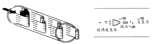 在流體中設(shè)置三角柱型旋渦發(fā)生體,則從旋渦發(fā)生體兩側(cè)交替地產(chǎn)生有規(guī)則的旋渦,這種旋渦稱為卡門渦街旋渦,如右圖所示,旋渦列在旋渦發(fā)生體下游非對(duì)稱地排列。設(shè)旋渦的發(fā)生頻率為f,被測(cè)介質(zhì)平均流速為 ,旋渦發(fā)生體迎流面寬度為d,表體通徑為D,即可得到以下關(guān)系式: