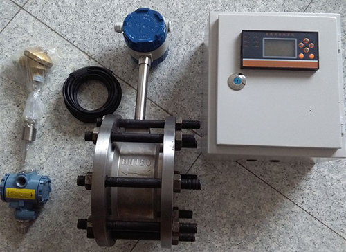 分體式渦街流量計由流量傳感器、溫度傳感器、壓力傳感器和智能流量顯示積算儀四部分組成,具有智能溫度、壓力補償功能,由智能流量顯示積算儀遠程顯示介質溫度(℃)、工作壓力(MPa)、瞬時標況體積流量(m3/h)和累計標況體積流量(m3)。