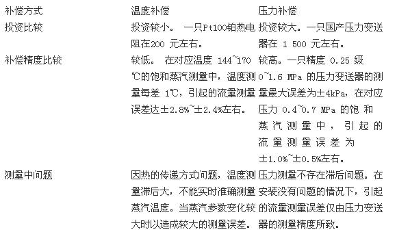2.1.1飽和蒸汽采用溫度補(bǔ)償和壓力補(bǔ)償?shù)谋容^