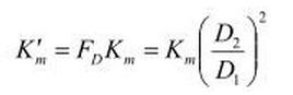 當(dāng)管道內(nèi)徑小于測(cè)量管內(nèi)徑(3%以內(nèi))時(shí)雖然不會(huì)對(duì)儀表本身所固有的流量系數(shù)產(chǎn)生影響,但因截面積突變引起表觀流速變化而可能產(chǎn)生附加測(cè)量誤差。這時(shí)可通過(guò)修正流量系數(shù)時(shí)可通過(guò)修正流量系數(shù)Km來(lái)補(bǔ)償,其修正后流量系數(shù)K'm為: