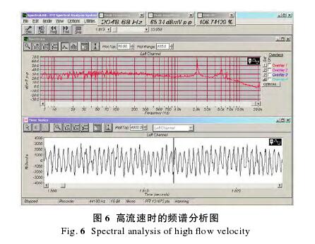 如圖 5 所示,漏波現(xiàn)象使流量偏小 44.3%。針對(duì)這一現(xiàn)象,采用頻譜分析+動(dòng)態(tài)濾波,改善信號(hào)波動(dòng),消除“漏波”現(xiàn)象。信號(hào)可以從時(shí)域分析,也可以從頻域分析。時(shí)域的信號(hào)圖像,是以時(shí)間軸為橫軸;頻域的信號(hào)圖像,是以頻率值作為橫軸。信號(hào)的時(shí)域分析主要側(cè)重于信號(hào)的直觀印象,例如信號(hào)的周期,信號(hào)在某一時(shí)間點(diǎn)的幅值等。信號(hào)的頻域分析,是采用傅里葉變換,將 X(t)變換成 X(f)。具體的變換方法在這里不再贅述。信號(hào)的頻譜圖表明了信號(hào)在不同頻率分量成分的大小,比時(shí)域圖像提供更具體更豐富的頻域圖像。在 Pico Scope 示波器中,可以利用其頻譜分析的功能來(lái)觀察信號(hào)的頻譜。信號(hào)的濾波處理通常是信號(hào)處理中常用的方法。信號(hào)的濾波主要是獲得自己想要的信號(hào),并且過(guò)濾掉不符合實(shí)驗(yàn)要求的信號(hào)。通常有低通、高通、帶通、帶阻這幾種方式。實(shí)際應(yīng)用中,通常是設(shè)計(jì)濾波電路對(duì)電路進(jìn)行濾波。在測(cè)試測(cè)量中,往往需要的是濾掉信號(hào)中的雜波。盡可能排除影響因素,通過(guò)對(duì)丁烷專(zhuān)用流量計(jì)傳感器原始信號(hào)直接進(jìn)行實(shí)時(shí)頻譜分析,得出超高流速時(shí)的流量值。